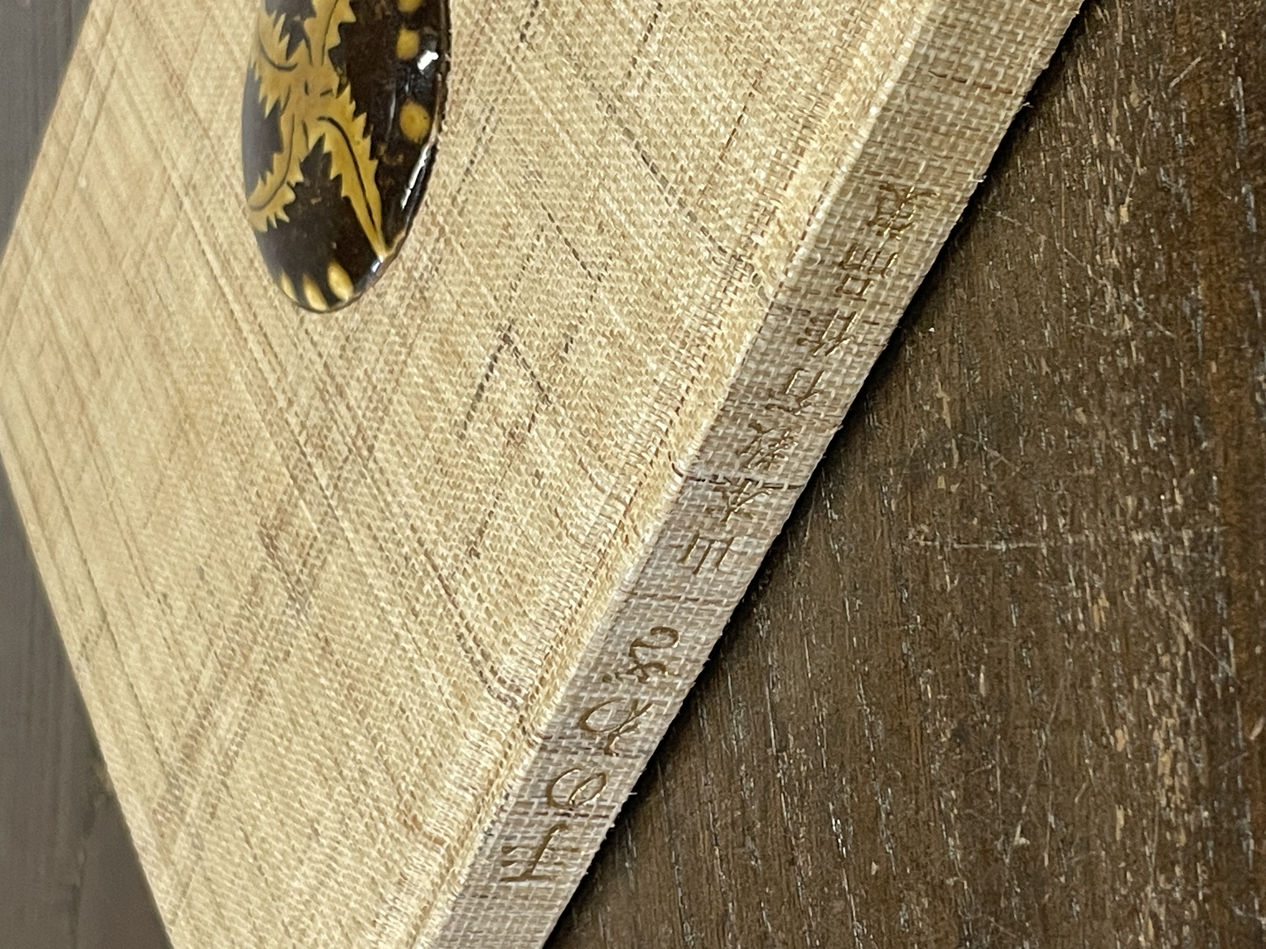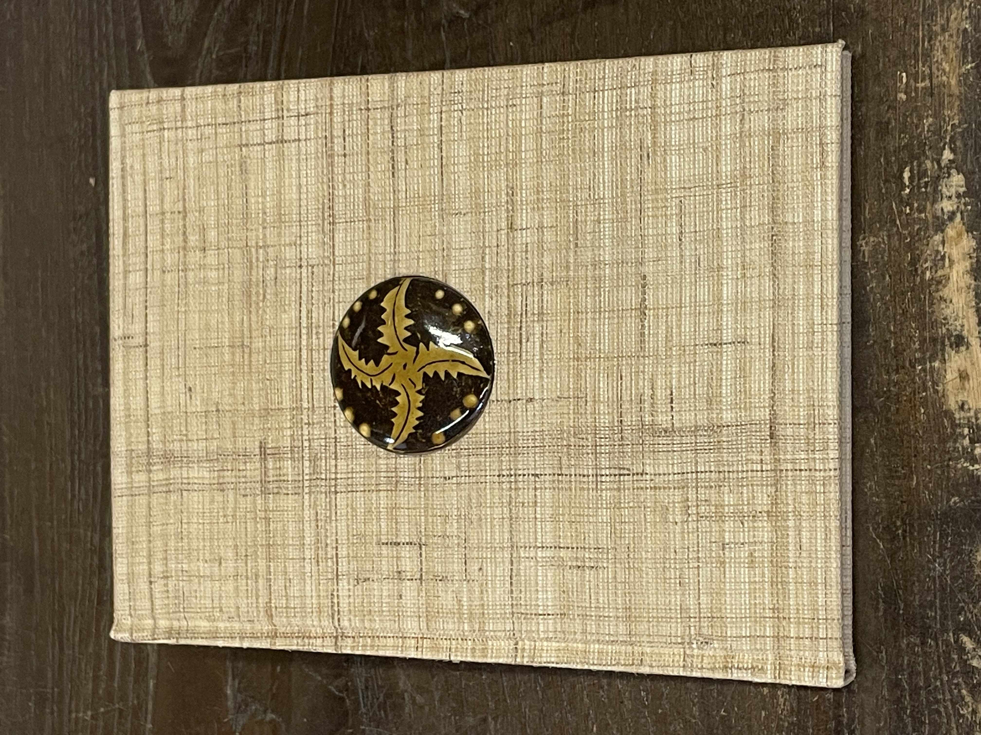 本体見本と、表1にはめ込む陶板やエディションナンバーの紙片が出来上がりましたのでご覧ください。